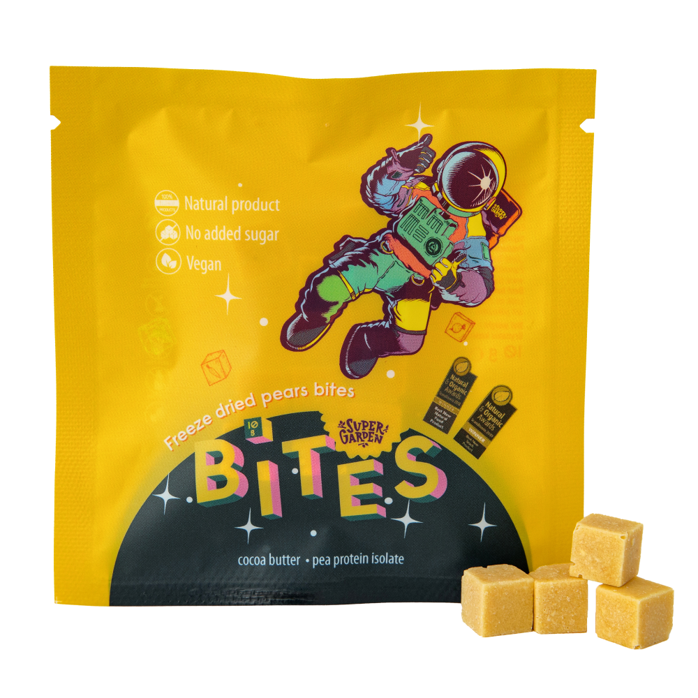 Ingredients: pears, cocoa butter, pea protein isolate.